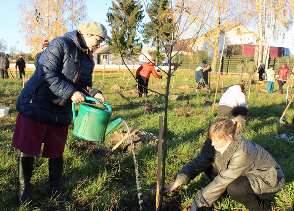 Пока учащиеся СШ №1 отдыхают на каникулах, их педагоги вместе техперсоналом школы, работниками других учреждений образования (детских садов, СШ №2, СПЦ, ЦКРОиР «Радуга»), общественный объединений (РК ОО «БРСМ», РО БО Красного креста), УП ЖКХ и иных организаций и горпосёлка завершили высадку плодового сада на территории школы. Это значимое для её коллектива событие, в котором приняло участие порядка сотни лиозненцев, состоялось в среду, 28 октября.