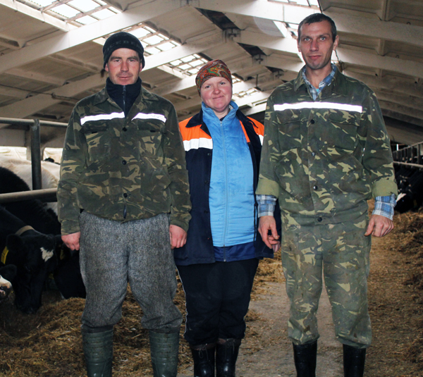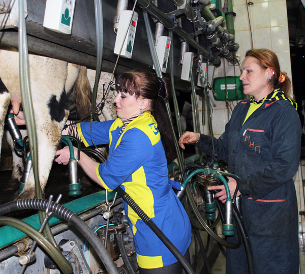 – На данный момент на комплексе содержится 965 голов крупного рогатого скота, – присоединились к разговору зоотехник комплекса М. Г. Мащенко и учётчик Е. О. Липовка. – Из них 597 коров – дойное поголовье. Ежемесячно получаем по 50-60 телят. Сейчас в наличии 42 телёнка, содержим молодняк до 21 дня, затем передаём на другие фермы в своём хозяйстве. Бычков отправляем на откорм в ОАО «Барсеево». Животноводческий процесс осуществляем по технологии круглогодичного стойлового содержания. Однако проводим оздоровительные мероприятия на воздухе. Этим летом выгоняли коров на зелёные пастбища вблизи комплекса. Поэтому многих проблем, в частности, такой как болезнь копыт, удаётся избежать. В этом, конечно же, заслуга ветврача С. А. Гусева и осеменатора Л. Г. Шалупкиной.