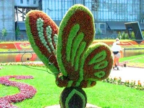 В качестве «затравки» идея номер один – топиар. Это одно из древнейших садово-парковых искусств. Слово происходит от латинского «topiarius» – «садовник». Топиар бывает двух видов. Первый, когда определённая форма с помощью стрижки придаётся деревьям и кустарникам, и более простой, когда нужная форма вылепливается посредством стальной проволоки (каркасный).