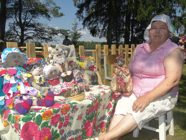 Первой, с кем нам довелось познакомиться, стала Г. И. Канцыял. Галина Ивановна на праздник приехала вместе со своими поделками – тряпичными куклами. Это увлечение появилось недавно, когда в одной из деревень Крынковского сельсовета у пожилой местной жительницы Галина Ивановна нашла старинную игрушку. Такую, с которой дети играли сто лет назад.