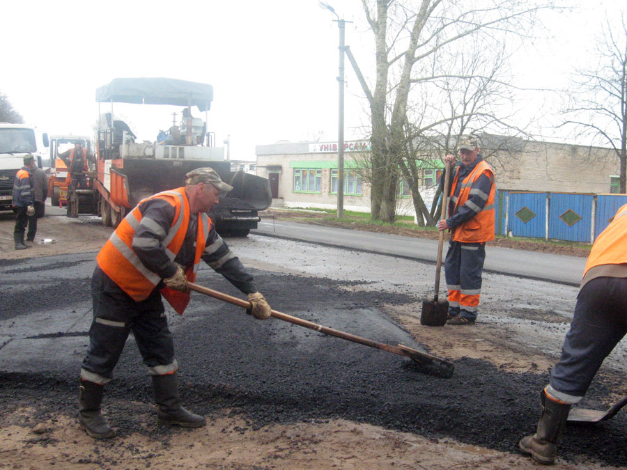 Работников филиала «Лиозненское ДРСУ № 107» мы застали за ремонтом дороги по ул. Добромыслинская. Как сообщил главный инженер предприятия С. Н. Мужелёв, здесь покрытие обновится от железнодорожного переезда до знака «Лиозно». Задействована и большегрузная техника, предоставленная АТП-5 г. Витебск. По словам Сергея Николаевича, они давно тесно сотрудничают с данной организацией, которая никогда не отказывает в помощи. Планируется, что будет сделан подъезд к «Универсаму № 2», хотя это сложно в финансовом плане. Обязательно заасфальтируются площадки возле молокозавода и хлебной базы. Эти предприятия уже подготовили необходимые проектные и другие документы для проведения работ.