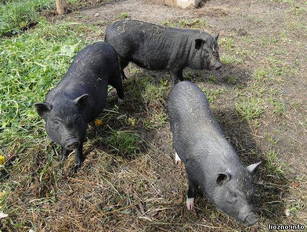 Осматриваясь, заметили на подворье трёх вьетнамских свинок.