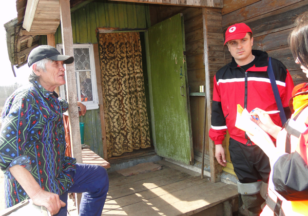 Возле дома местного жителя Алексея Мурашкина работниками РОЧС был организован противопожарный пункт , который снабдили мотопомпой, огнетушителями, пожарными рукавами, стволами и т.п. Кстати, Алексей, является добровольным помощником работников пожарной службы. Мужчину проинструктировали на случай чрезвычайной ситуации. Во время нашего пребывания в деревне к председателю сельского Совета обратились местные жители с просьбой в выходные организовать переправу через реку для детей, которые приедут из города на выходные. В эти дни на берегу разлившейся реки будут дежурить спасатели.