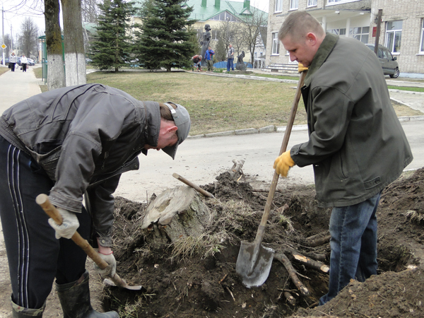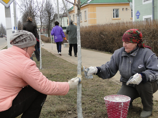 Дружно наводили лоск на самом ответственном участке, являющемся лицом города – на протяжении всей улицы Шоссейной – работники всех учреждений культуры, отдела образования райисполкома, районной больницы, энергосбыта и энергонадзора, РУЭС. Связисты, к слову, уже не первый год выходят на закреплённую территорию в течение 2 дней, поскольку одолеть сложный и большой участок (склон, поросший кустарниками и покрытый толстым ковром прошлогодней листвы) за один раз очень сложно. В этом году им досталась ещё и свалка, которую неподалёку организовали местные жители.
