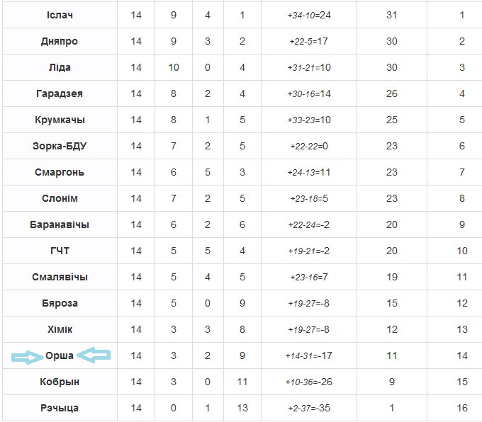 "Орша" остаётся 14-й