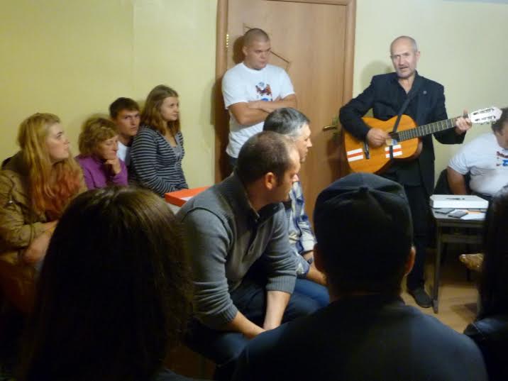 В заключение встречи перед участниками выступил известный бард Андрей Мельников, который традиционно приезжает в Оршу на годовщину Оршанской битвы.