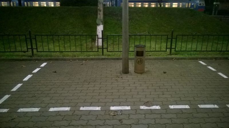 Ранее мы уже сообщали, что в качестве эксперимента на Оршанском вокзале теперь запрещено курение. Нарушившему запрет грозит достаточно большой штраф - до 720 тысяч рублей. Но любители сигарет очень страдать на вокзале все равно не будут - для них в нескольких местах вокруг вокзала созданы специальные места для курения. Эти места отмечены белым пунктиром, внутри квадрата стоит урна-пепельница. Такие места есть у памятника Заслонову и, по крайней мере, по три места на пассажирских платформах.