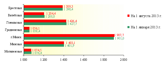 Численность населения по областям и Минску