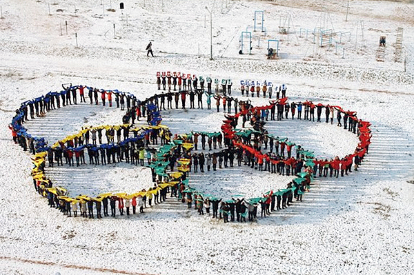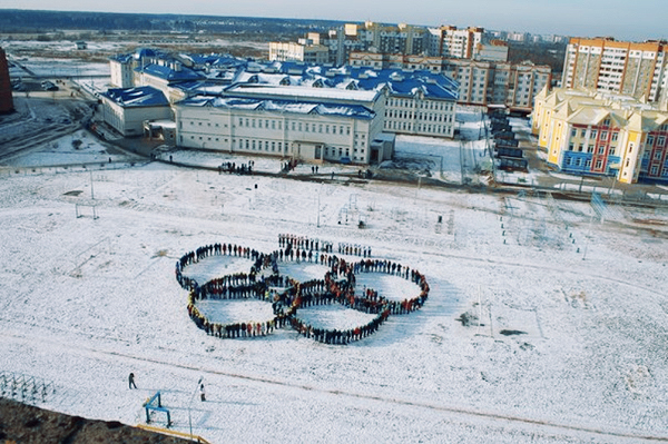 «Наша школа присоединилась к акции, направленной на популяризацию олимпийского движения, физкультуры и спорта, которую в преддверии зимних Олимпийских игр в Сочи проводит представительство НОК Республики Беларусь в Витебской области, – сообщила “Химику” заместитель директора по воспитательной работе Татьяна Костюкова. – Всего в флешмобе приняло участие около 1200 учащихся. Ученики младших классов изобразили надпись «Я люблю Беларусь», а старшеклассники выложили пять переплетенных колец, которые изображены на флаге олимпиады и известны как олимпийские кольца».