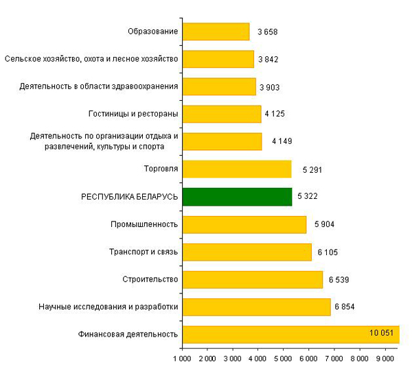 В январе 2014 года в строительстве средняя заработная плата составила 6 538,6 тыс. рублей, на транспорте и в связи – 6 104,8 тыс., в промышленности – 5 903,9 тыс., в сельском хозяйстве, охоте и лесном хозяйстве – 3 842,5 тыс., в образовании – 3 657,7 тыс., в том числе учителей – 4 305,6 тыс., профессорско-преподавательского состава – 5 985,3 тыс. рублей.