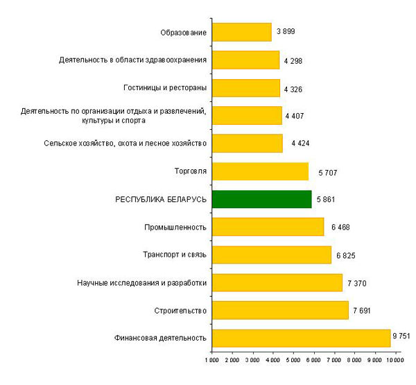 В апреле 2014 года в строительстве средняя заработная плата составила 7.691,1 тыс. рублей, на транспорте и в связи – 6.824,7 тыс. рублей, в промышленности – 6.467,5 тыс. рублей, в сельском хозяйстве и лесном хозяйстве – 4.423,6 тыс. рублей, в образовании – 3.899,2 тыс. рублей, в том числе учителей – 4.555,9 тыс. рублей, профессорско-преподавательского состава – 6.515,8 тыс. рублей.