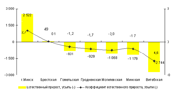 По итогам первого полугодия Витебщина продолжает удерживать печальное лидерство: занимает первое место по показателю естественной убыли населения (2 744 человек), демонстрирует самый низкий в стране коэффициент рождаемости (10,7 при среднем в республике 12,2) и находится на первом месте по коэффициенту смертности (15,3 при среднем в республике 13,1).