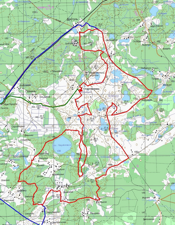 Дретунь – Полота – Затростенье – Круглики – Заполье – Хоняки – Збродовичи – Домники – Котляны – Лысое – г.Подсосна – Труды – Недружное – Дретунь.
