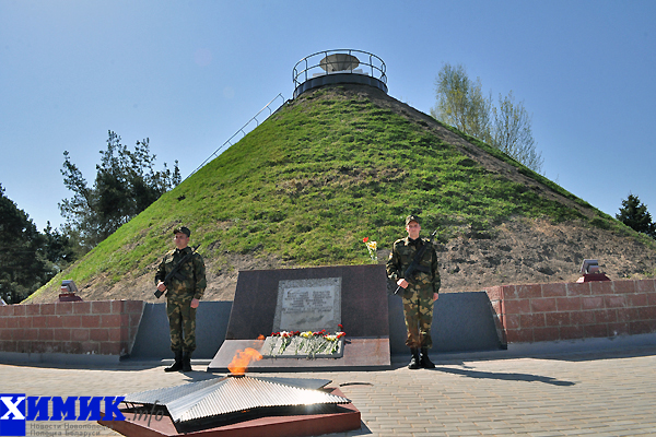 День Победы в Новополоцке решено было отпраздновать на месте бывшего концлагеря в поселке Боровуха, где в настоящее время сооружен памятный мемориал «Звезда». О количестве погибших в этом месте достоверных сведений нет. Одни называют цифру в 29 тысяч человек, другие – в 50 и даже 100 тысяч. Продолжились праздничные мероприятия у бывшего Дома офицеров.