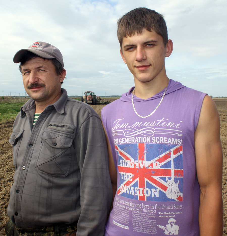 Механізатар Павел Болт і практыкант Максім Адынец.