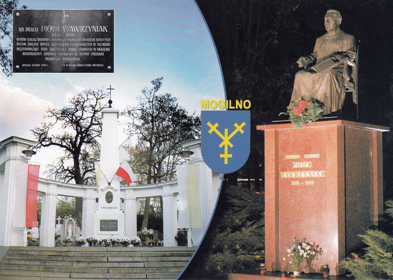 Пасля заканчэння працоўнага дня энергічны 52-гадовы рэдактар павятовай газеты “Paluki i ziemia Mogilenska” Марэк Холяк прапанаваў мне крыху пагуляць па горадзе, наведаць каляровы музычны фантан у парку, а таксама пабываць на мясцовых могілках. Месца вечнага спачыну ў гэтым 13-тысячным райцэнтры не камунальнае, як у іншых польскіх паселішчах: яго ўтрымлівае адна з чатырох мясцовых каталіцкіх парафій. Маўзалей на мясцовых могілках па праекце архітэктара Стэфана Чыбістоўскага стаў адным з сімвалаў старажытнага горада, які Магдэбургскае права атрымаў яшчэ ў 1398 годзе. Ён паўстаў у памяць пра славутага земляка, пробашча фарнага касцёла і патрыёта Пятра Ваўжняка (1849-1910). Калі гэтыя землі пасля трайнога падзелу Польшчы былі пад уладай Прусіі, святар прадстаўляў край як дэпутат прускага Парламента. Ксёндз шмат клапаціўся пра простых людзей, садзейнічаў развіццю асветы, медыцыны, шмат дапамагаў бедным, дамогся пабудовы перад вайной Дома культуры для суайчыннікаў.