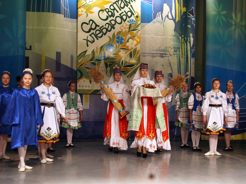 Усе, хто пераступаў парог установы культуры, ужо ў фае траплялі ў атмасферу святочнасці. Дэлегацыі працоўных калектываў і гасцей песнямі, музыкай і пачастункамі сустракалі народныя клубы “Юнчанка” і “Традыцыя”. Галоўныя ж дзеі разгортваліся на сцэне РДК, дзе на самым пачатку віноўнікаў урачыстасці прыгожым выхадам з калоссем збожжавых у руках віталі юныя танцоры. Пад апладысменты прысутных дзяўчаты ўручылі старшыні райвыканкама В. С. Гутараву каравай з новага ўраджаю.