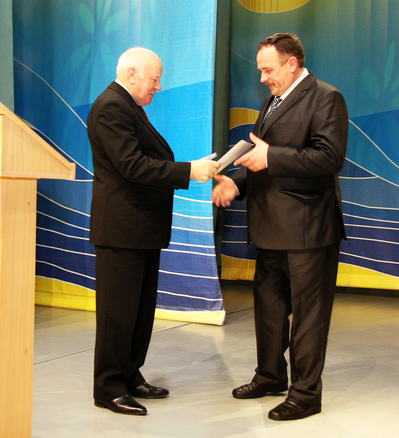 Старшыня раённай арганізацыі прафсаюза работнікаў аграпрамысловага комплексу Б. П. Шылько ўручыў групе работнікаў сельскай гаспадаркі і перапрацоўчай прамысловасці ўзнагароды рэспубліканскага і абласнога камітэтаў Беларускага прафсаюза работнікаў АПК.