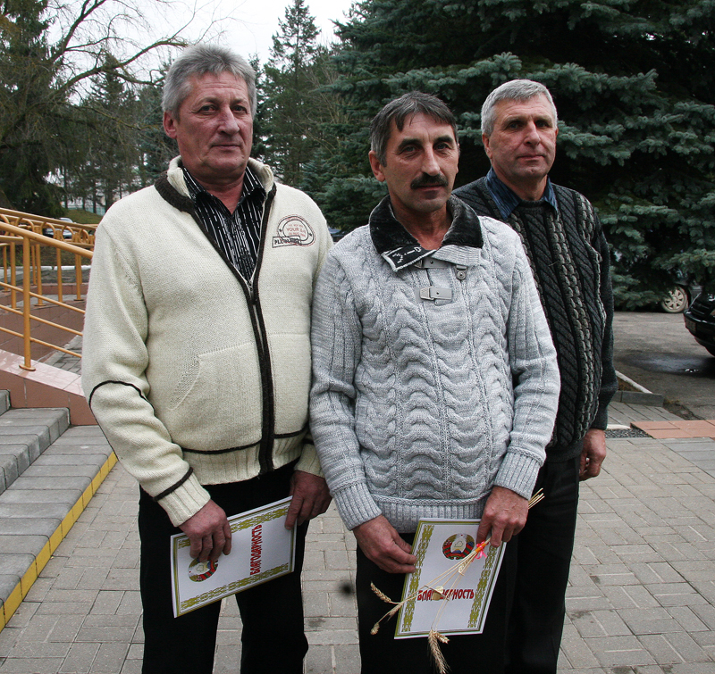 За станоўчую работу па вытворчасці алейных культур Падзяка старшыні райвыканкама была ўручана дырэктару ААТ “Сцяг Перамогі-агра” Ю. Я. Борысу. Такіх жа ўзнагарод удастоены і загадчыкі ферм “Хацілы”, “Навасёлкі” і “Шыркі” А. В. Мініч, Я. У. Гродзь і А. Э. Далгапятава, калектывы якіх дасягнулі найвышэйшых вынікаў па надоях і вытворчасці малака.