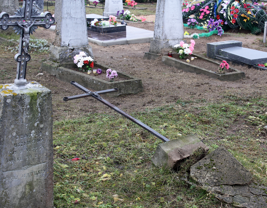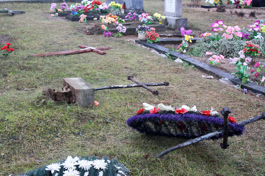 — І шлях карацейшы, і душы нейкі спакой, — расказвала пазней жанчына. — Могілкі дагледжаныя, прыгожыя. Ідзеш праз іх — і забываешся на паўсядзённыя праблемы, думаеш пра нешта больш высокае, чым зямное. На гэты раз толькі пераступіла за брамку агароджы, як убачыла адразу тры паваленыя помнікі. Спачатку падумала, што родныя пахаваных будуць штосьці мяняць. Спынілася. Бачу, адзін з іх разбіты напалову. Падняла вочы, а далей па могілках яшчэ больш жудасная карціна: вялікія каменныя, мармуровыя, гранітныя помнікі ляжалі на зямлі, валяліся пагнутыя жалезныя, паламаныя драўляныя крыжы, раскіданы кветкі. Гэта быў шок.