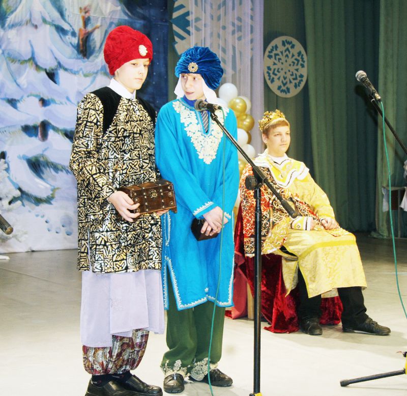 В торжественном убранстве сцена. Над символическим вертепом сияет звезда. Колокольный звон оповещает о начале торжества. Звучит тропарь «Рождество Твое, Христе Боже наш…» Преподаватель воскресной школы И. В. Колесень поздравляет собравшихся с праздником и предлагает обратиться к евангельским событиям. Сюжеты, сменяя друг друга, уносят в историю, которой уже более двух тысяч лет. Не в славе и великолепии, а в нищете, убожестве и уничижении является в мир Создатель; не роскошные палаты, а вертеп приемлет Его. Весть о рождении Богомладенца первыми услышали вифлеемские пастухи. А после них — мудрые персидские волхвы: увидев на небе яркую необычную звезду, они поняли, что на свет явился кто-то великий.