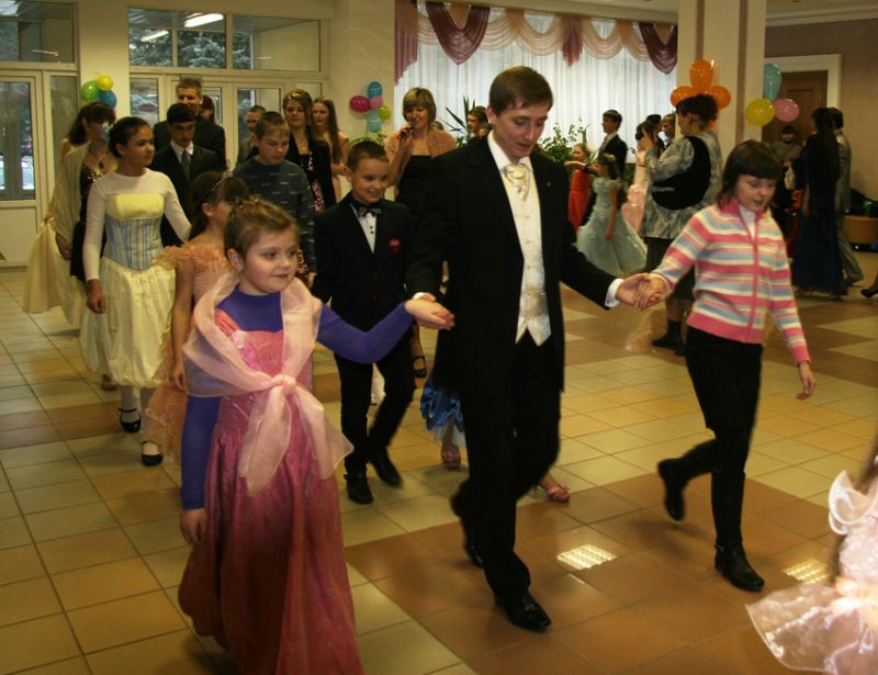 К этой радостной встрече готовились, её ждали. Мы устроили настоящий бал. Казалось, перенеслись в другую эпоху — изящный и романтичный ХІХ век. Сделать это помогла Юлия Михайловна Петухова, хореограф, учитель бальных и классических танцев. Для тех, кто ещё не имел достаточных навыков, ученики Юлии Михайловны в начале каждого танца проводили мастер-класс. Были и весёлые конкурсы-игры, и маленький антракт, когда все отправились в буфет. На протяжении бала мы общались и знакомились, лица светились улыбками.