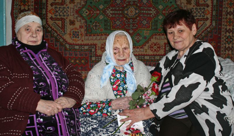 Бабуля, прыбраная ў новы квяцісты халат, з белай пуховай хусцінкай на плячах, сядзела на ложку. Прыходу гасцей узрадавалася і расчулілася ад такой увагі. Дзякавала за віншаванні і падарункі, расказвала пра клопат дзяцей, унукаў, праўнукаў.