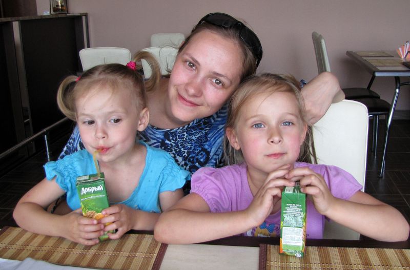 Знаёмімся з некаторымі наведвальнікамі. Мінчанка Караліна Стасюк з дзвюма дачушкамі заехала сюды ўпершыню. Частуюцца сокамі, марожаным. Ім даспадобы інтэр’ер, прыемная прахалода ў зале, смачнае марожанае.