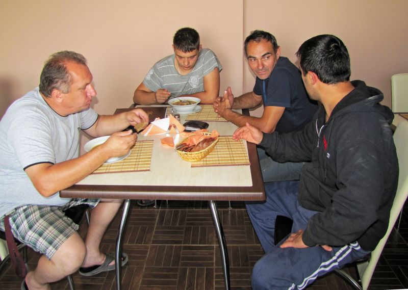 Вадзіцелі Ілья, Міхаіл, Генадзій, Ахмед — калінінградцы. Са свайго горада вязуць грузы ў Маскву. У кафэ не ўпершыню. Задаволены і сталаваннем, і абслугоўваннем.