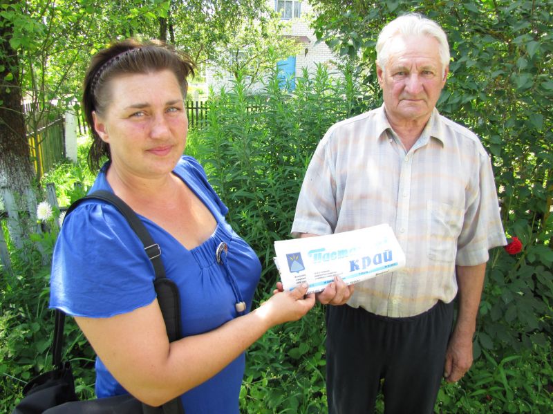 С. П. Юркевіч выбраны старэйшынай вёскі. Ён заўсёды ў курсе спраў, што адбываюцца ў раёне і краіне. Вось і ў гэту хвіліну атрымлівае з рук паштальёна свежы нумар «Пастаўскага краю».