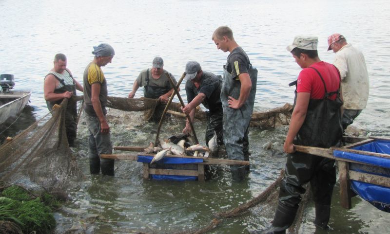 У калектыве каля 70 чалавек, усе зацікаўлены ў добрых вытворчых паказчыках і працуюць на канчатковы вынік. Калі мы прыехалі на сажалкі, брыгада рабочых якраз распачынала адлоў.