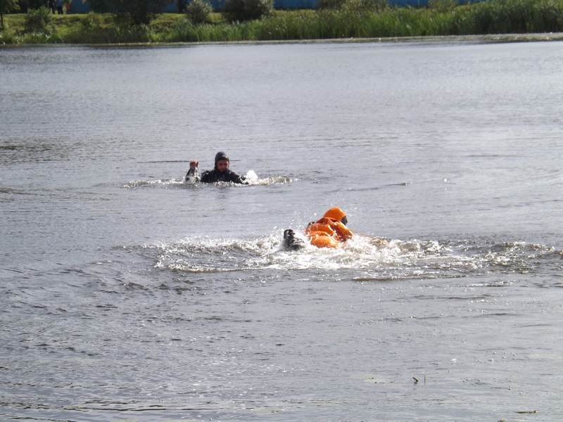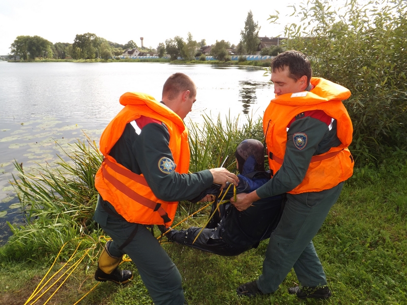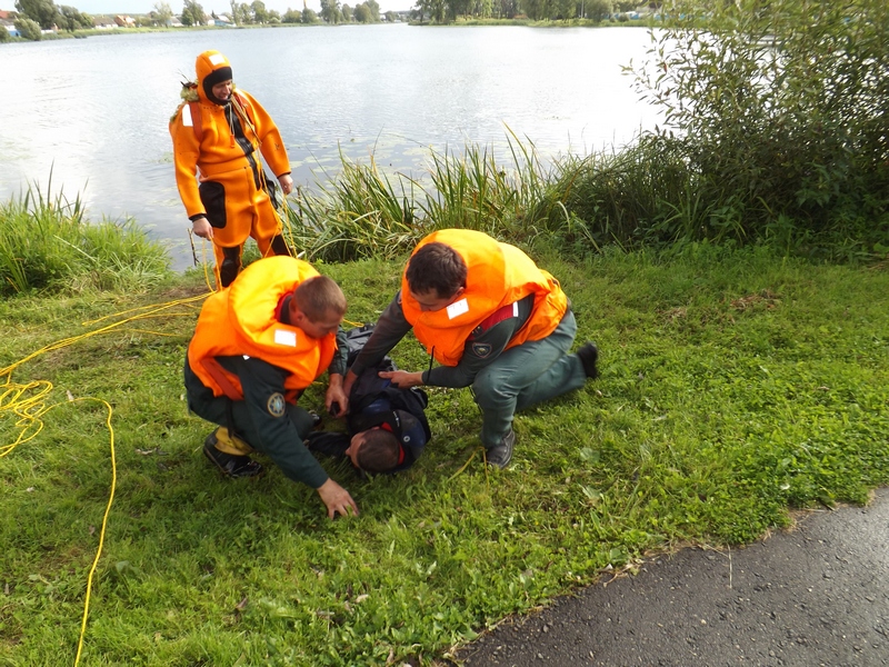 Завершающим этапом учений стало происшествие, произошедшее на реке «Мяделка», возле кафе «Бриз». Двое человек, катаясь на лодке перевернулись и начали тонуть. На помощь были вызваны спасатели ПАСЧ№1 и ОСВОДа. Группой спасения на водоёмах отдела был спасён один из пострадавших. Уже на берегу были проведены реанимационные мероприятия – непрямой массаж сердца и искусственная вентиляция лёгких, вызвана СМП. Не менее сложная задача досталась и ОСВОДу. Поскольку второй пострадавший ушёл под воду, искать его пришлось водолазу. Тело утонувшего было обнаружено и доставлено на берег.