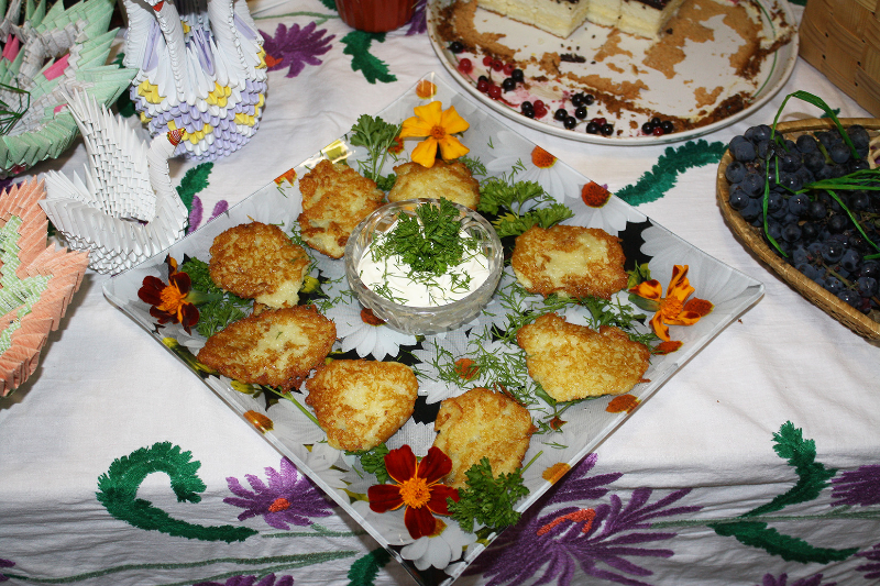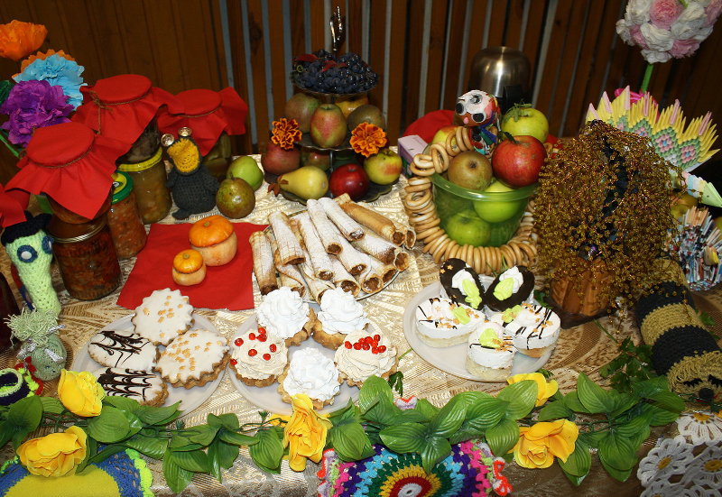 Дэгустацыя свежаспечаных бліноў адбылася ў фае. Там жа канкурсантамі загадзя былі падрыхтаваны сталы з іншымі кулінарнымі прысмакамі, а таксама ўласнымі творчымі работамі — карцінамі, фотаздымкамі, арыгінальнымі вырабамі… Усе яны былі аднолькава высока ацэнены членамі прадстаўнічага журы.