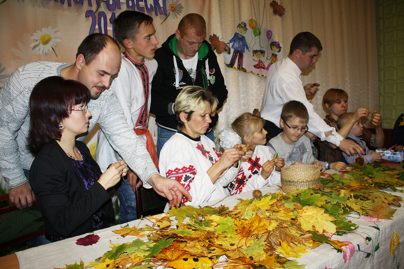 Творчасць давялося праявіць і на заключным этапе, які называўся “Сямейны абярэг”. Для яго правядзення на сцэне быў устаноўлены вялікі стол з мноствам кляновага лісця. З яго патрабавалася зрабіць букет. Але не звычайны, а асаблівы. Арыгінальную тэхналогію стварэння кветак з асенняга лісця паказала дырэктар мясцовага Дома культуры Галіна Бразюль. Канкурсанты хутка яе ўлавілі і ўжо праз некалькі хвілін выставілі на суд прысутных свае работы.
