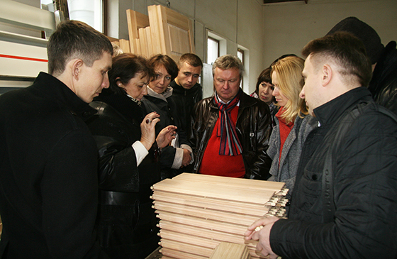 Участники выставки смогли проследить весь процесс изготовления дверей, начиная от распиловки древесины и заканчивая упаковкой готовой продукции. Они на деле убедились, что двери и комплектующие к ним изделия изготовлены только из натуральной древесины, использование ДСП, МДФ, ДВП и других материалов с применением «химии» здесь полностью исключено.
