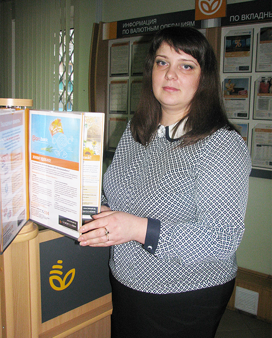 — Асноўнае, чым я займаюся, — гэта крэдытаванне фізічных асоб, — расказвала Н. П. Якубовіч. — Прымаю ў іх пакеты дакументаў, правяраю і ўношу даныя ў праграмна-тэхнічны комплекс. Таксама знаёмлю кліентаў з умовамі крэдытавання і праектам крэдытнага дагавора. Акрамя таго, адкрываю карт-рахункі фізасобам і выдаю ім картачкі, разам з інкасатарамі загружаю банкаматы. Адным словам, работа разнастайная і цікавая, грунтуецца на пастаянных зносінах з людзьмі.