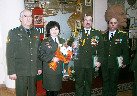 намінанты Лілія Скіпар, Сяргей Півень і Яўгеній Герасімаў з начальнікам ваенна-медыцынскага аддзела Дзяржаўнага пагранічнага камітэта палкоўнікам медыцынскай службы Генадзіем Жыўнем (на здымку крайні злева).