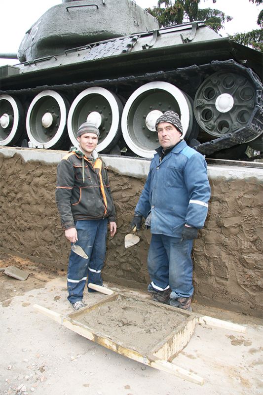А пакуль тут вядуцца работы па абнаўленні помніка. Асноўны аб’ём выконваюць рабочыя таварыства з абмежаванай адказнасцю “ПастКамень”. Рэканструкцыя будзе завершана да пачатку мая.