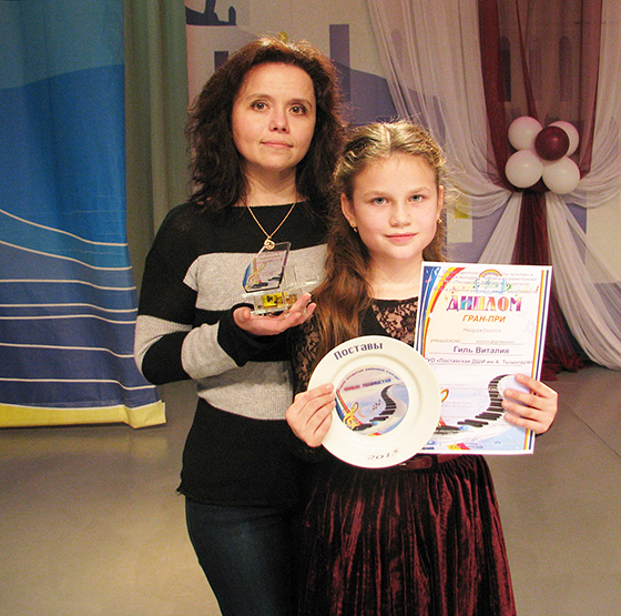 Уладальніца Гран-пры конкурсу Віталія Гіль разам са сваім педагогам К. Б. Мейшутовіч.