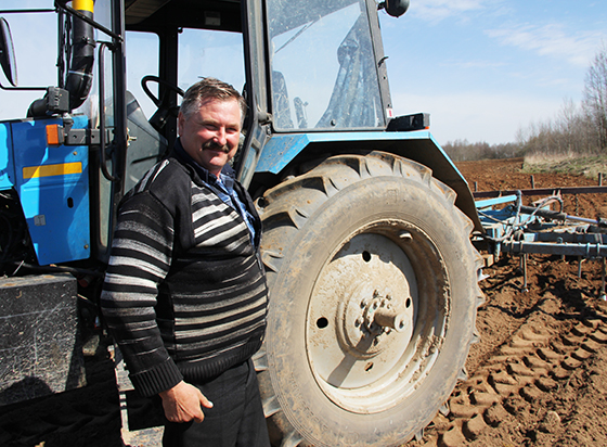 Генадзь Казакевіч, які рыхтуе глебу да сяўбы.