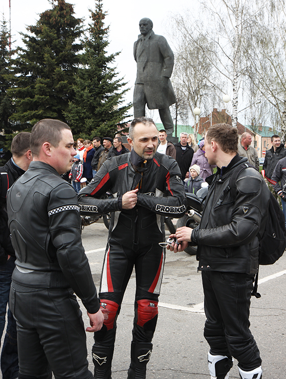 Потым матацыклісты зноў вярнуліся на плошчу Леніна, дзе працягвалі знаёміцца, гутарыць, дзяліцца планамі на новы сезон. Сярод іх быў і госць з Рыгі Томаш Казлоўскі. Як прыбалт трапіў на мерапрыемства і якія яго ўражанні?