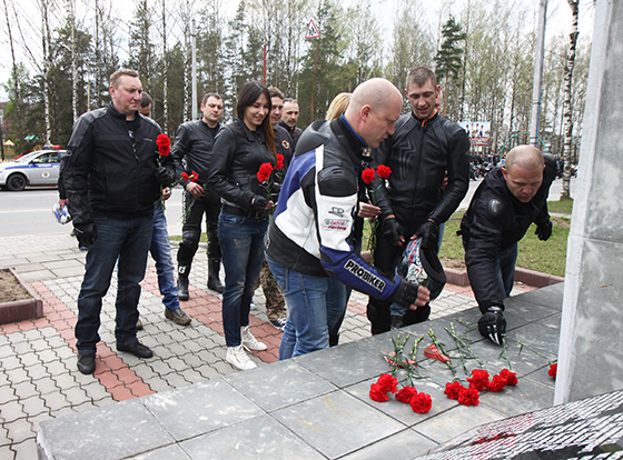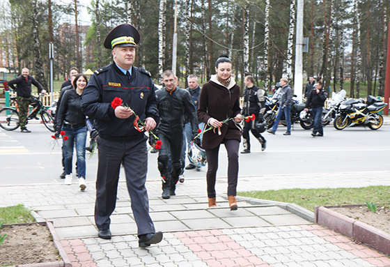 Удзельнікі і арганізатары злёту ўсклалі кветкі да брацкай магілы на ўездзе ў мікрараён пятага гарадка. Калона, якая туды накіравалася праз вуліцы Савецкую, Кляра і Юбілейную, прыцягвала ўвагу прахожых, выклікала шмат здзіўлення і захаплення. Хіба часта ў нашым горадзе можна бачыць такую дзею?
