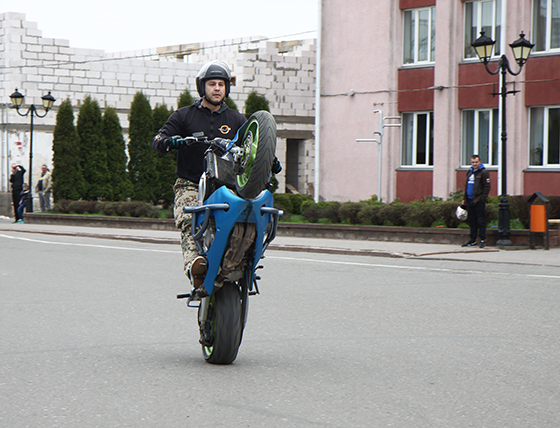 Напрыканцы злёту пастаўчанін Дзмітрый Новікаў у сваім паказальным выступленні прадэманстраваў выключнае валоданне матацыклам, у тым ліку і язду на адным коле.