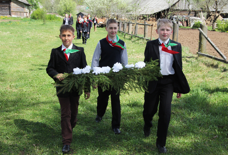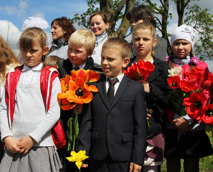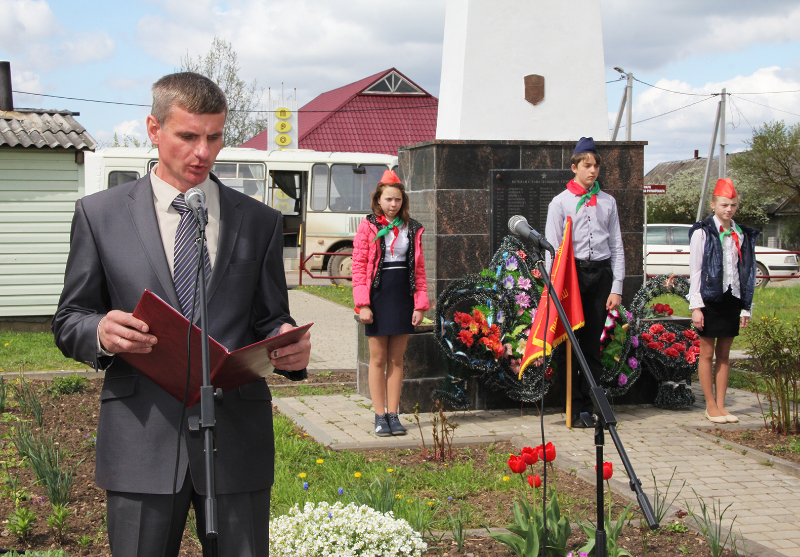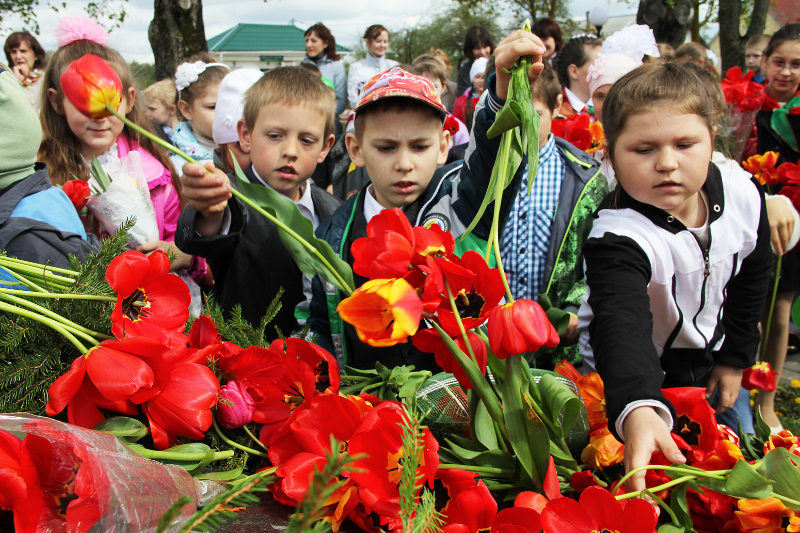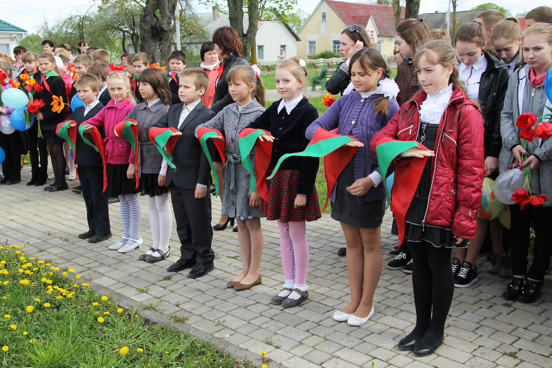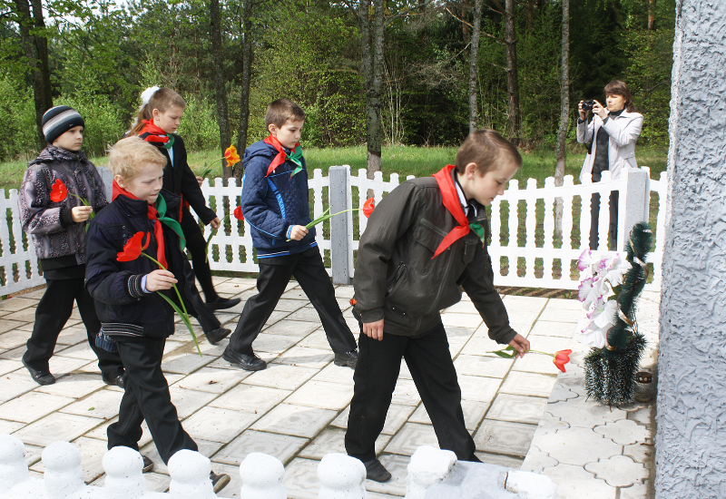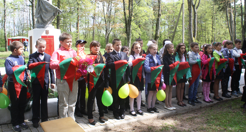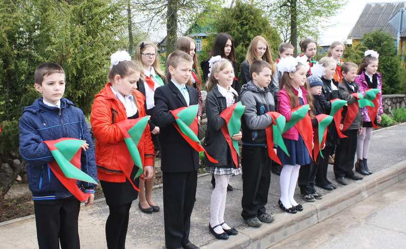 Пасля мінуты маўчання слова ўзялі школьнікі. Для многіх з іх гэты дзень стаў асабліва ўрачыстым і хвалюючым — старшакласнікі павязалі сваім малодшым сябрам піянерскія гальштукі. Лепшыя з лепшых вучняў застылі ў ганаровай варце каля абеліска, да якога лягло мноства кветак і вянкоў.