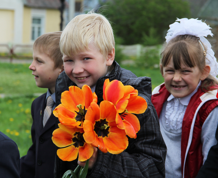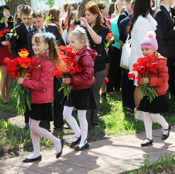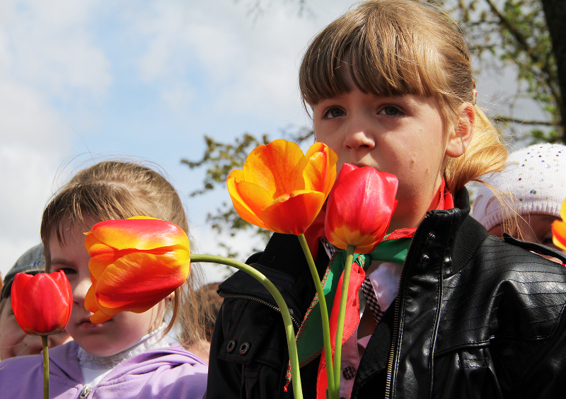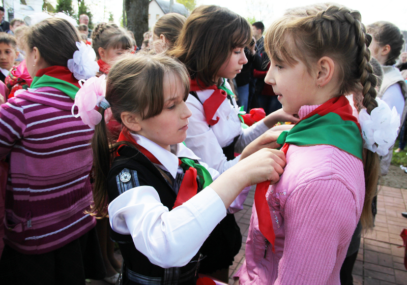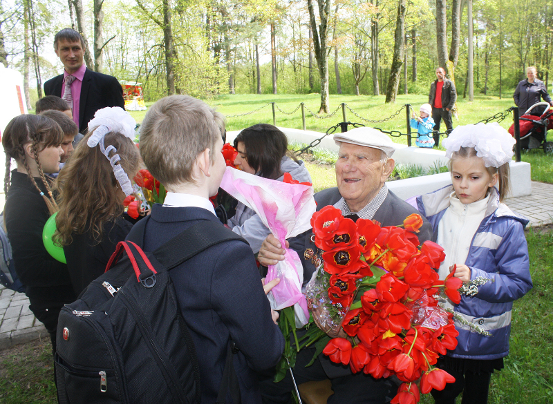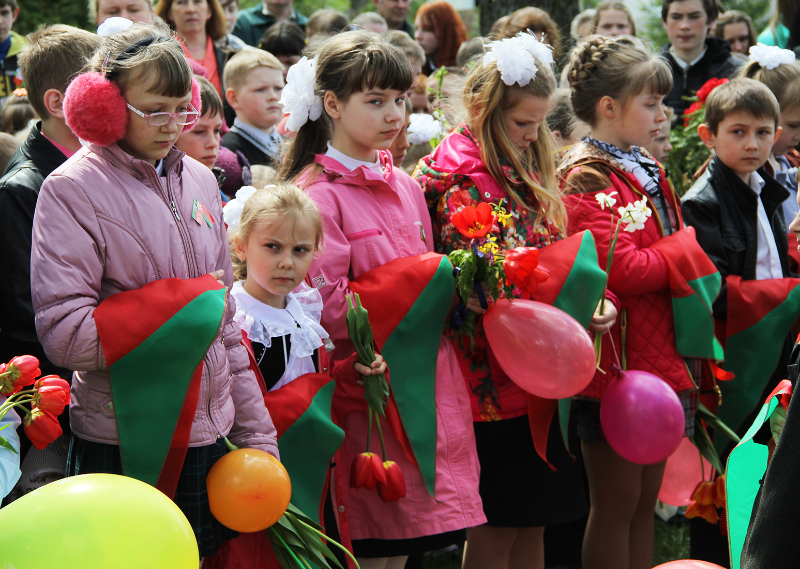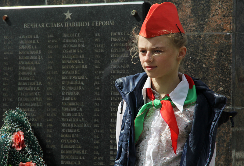 Пасля мінуты маўчання слова ўзялі школьнікі. Для многіх з іх гэты дзень стаў асабліва ўрачыстым і хвалюючым — старшакласнікі павязалі сваім малодшым сябрам піянерскія гальштукі. Лепшыя з лепшых вучняў застылі ў ганаровай варце каля абеліска, да якога лягло мноства кветак і вянкоў.