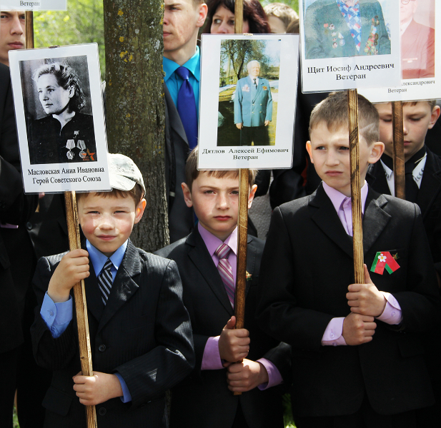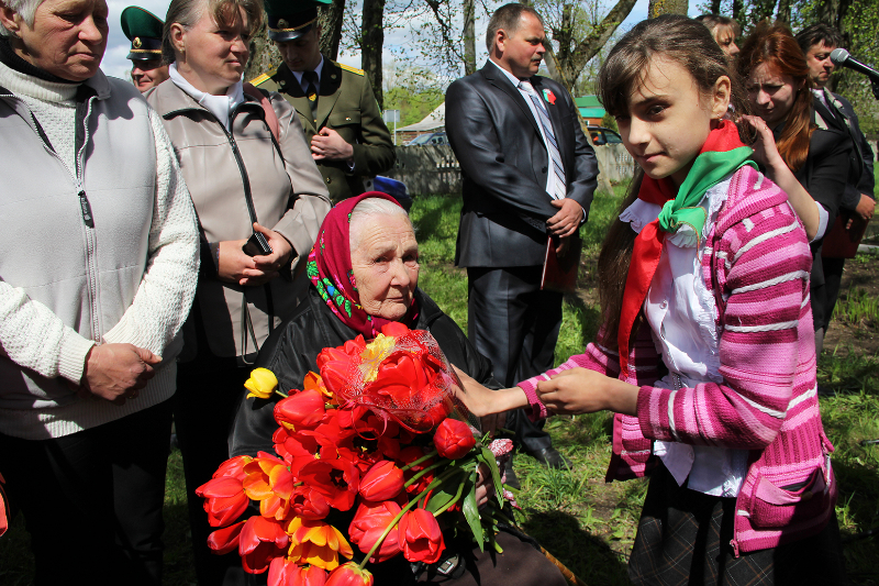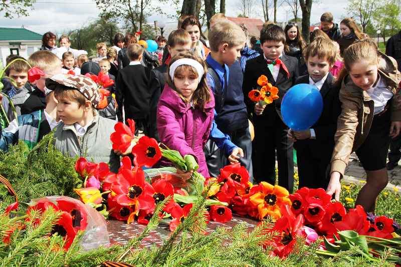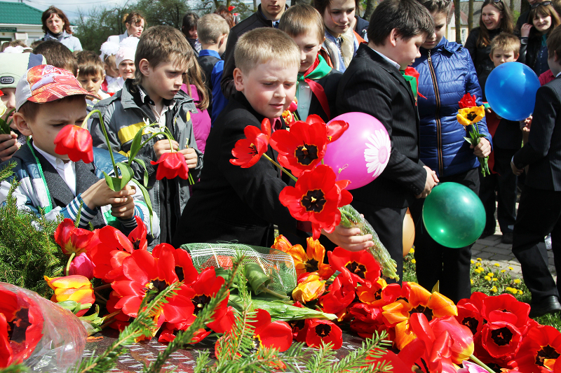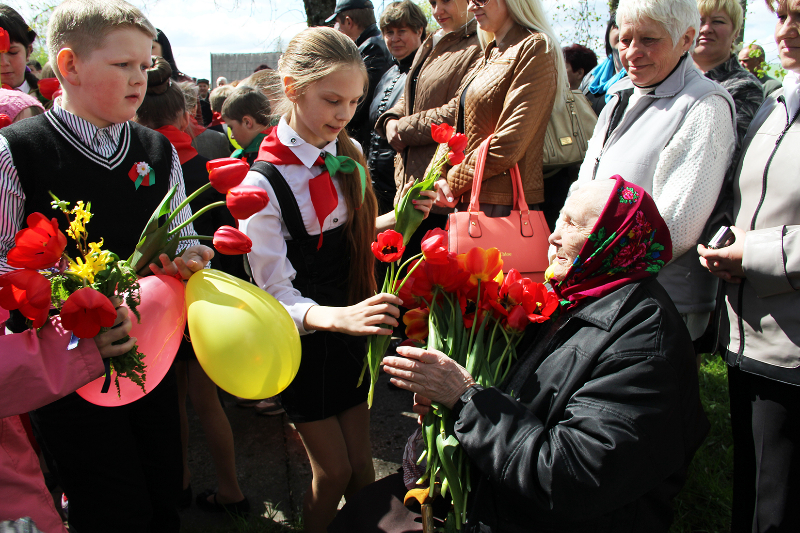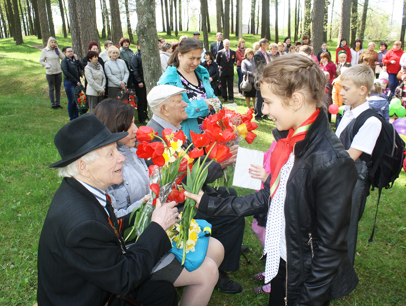 Свяціла яркае сонца, спявалі ў небе жаўрукі. Святочна апранутыя людзі з кветкамі ішлі да помнікаў і абеліскаў, каб аддаць даніну памяці тым, хто здабыў для нас мірнае яснае неба і спакой на зямлі.