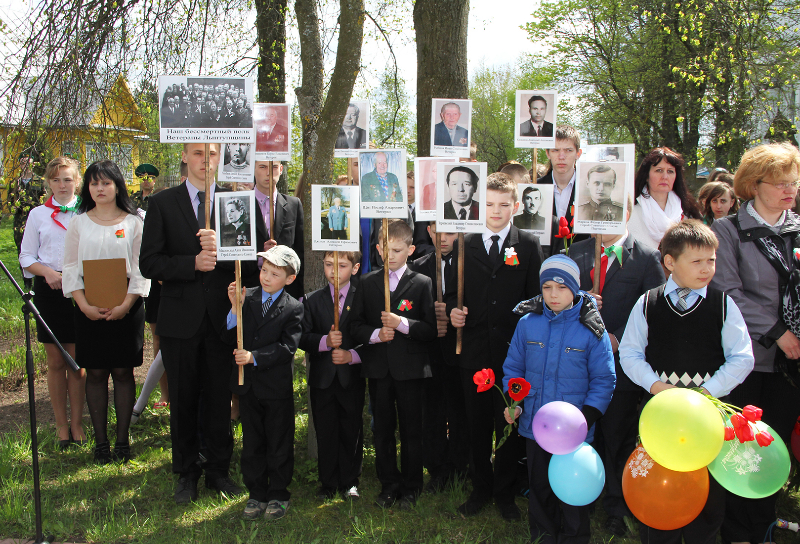 Кранальнасці мерапрыемству надала прысутнасць “Бессмяротнага палка” ветэранаў Лынтупшчыны. 70-годдзе Перамогі не сустрэў ні адзін з іх. На тэрыторыі сельсавета пражывае толькі адзін удзельнік тых жудасных падзей — вязень Фяціння Іванаўна Філімонава. Затое дзякуючы старанням вучняў мясцовай школы і намесніка дырэктара па выхаваўчай рабоце Валянціны Зянонаўны Руткоўскай прозвішчы і выявы герояў-землякоў ажывіліся ў памяці прысутных. Ганна Іванаўна Маслоўская, Аляксей Яфімавіч Дзятлаў, Анатолій Антонавіч Касьянаў, Іосіф Андрэевіч Шчыт, Зянон Сігізмундавіч Шымковіч, Уладзімір Станіслававіч Здраеўскі, Іван Сямёнавіч Рыбцоў — вось толькі некаторыя з іх.