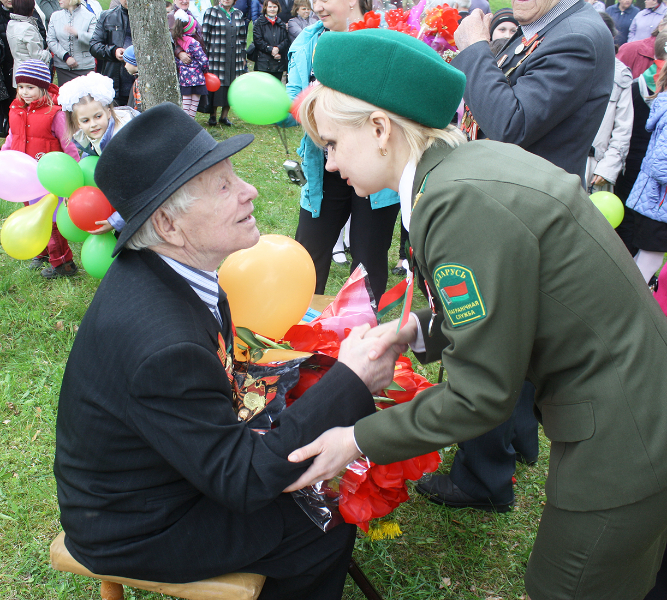 Гарадскі парк у Варапаеве. Ля помніка воінам, якія вызвалялі пастаўскі край, па традыцыі сабраліся школьнікі, прадстаўнікі ўсіх працоўных калектываў пасёлка. Старшыня сельвыканкама Н. М. Седзюкевіч вітае прысутных, з асаблівымі словамі падзякі звяртаецца да ветэранаў Вялікай Айчыннай вайны Пятра Антонавіча Лісовіча, Мікалая Ільіча Лысова, малалетняга вязня Віктара Міхайлавіча Лапушынскага. З 11 удзельнікаў ваенных дзеянняў, працаўнікоў тылу і 26 вязняў фашысцкіх лагераў, якія пражываюць на тэрыторыі сельсавета, змаглі прыйсці толькі яны. Кожнаму з іх было прадастаўлена слова. Падчас выступлення ветэраны дзякавалі Прэзідэнту краіны, а таксама мясцовай уладзе, медыкам, сацыяльнай службе за клопат і падтрымку.