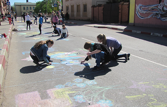 9 мая асфальт па вуліцы 17 Верасня (ад плошчы Леніна да Камсамольскай) ператварыўся ў сапраўдную карцінную галерэю. А зрабілі праезную частку яркай і маляўнічай навучэнцы школы мастацтваў імя А. Ромера.