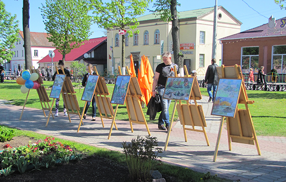 У гэты ж дзень на цэнтральнай плошчы горада, каля фантана, была арганізавана выстава работ навучэнцаў школы мастацтваў.